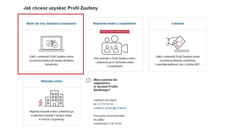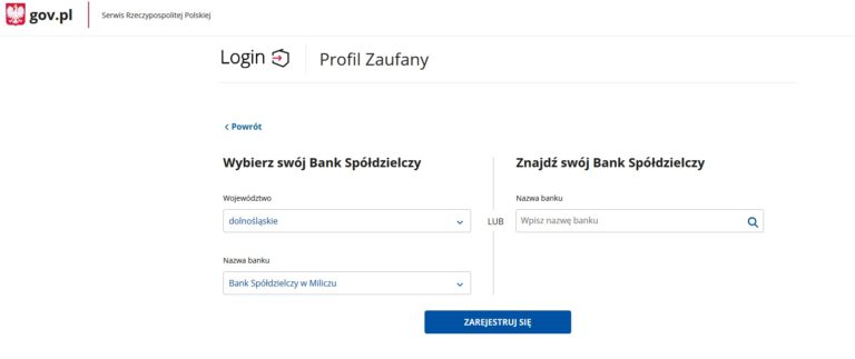 Dodatkowo sprawdź poprawność danych, które zostały przekazane z bankowości internetowej do PZ (wybierz przycisk „Mój profil zaufany”).