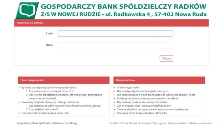 - W obszarze „Znajdź swój Bank Spółdzielczy”, w polu „Nazwa Banku” wpisz „Gospodarczy Bank Spółdzielczy Radków z/s w Nowej Rudzie” i zatwierdź, a następnie naciśnij przycisk „Zarejestruj się”